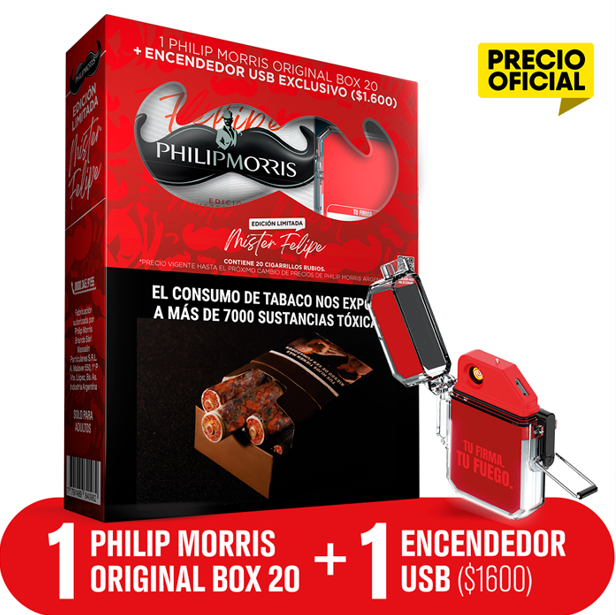 1 pack Philip Morris Original Box 20 + un encendedor USB